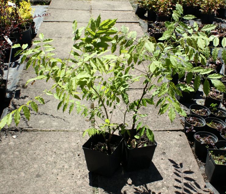 Побеги мощные, длиной до 10–12 метров, быстро нарастают и хорошо одревесневают. За сезон прирост составляет до 100 см. Лиана легко формируется, хорошо удерживается на опорах. Листья крупные, перистые, насыщенно-зелёные, декоративные на протяжении всего сезона. Лучше всего развивается на солнечных участках с плодородной, дренированной почвой.