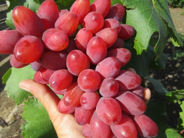 Срок созревания среднепоздний, середина – конец сентября. Гроздья крупные, до 800 г, цилиндроконической формы, средней плотности и плотные. Ягоды имеют уникальную форму – в виде сердца, очень крупные, массой 15-20 г, алого цвета. Сорт не имеет проблем с неравномерной окраской ягод. Мякоть плотная, хрустящая, сочная, съедающаяся кожица тонкая, очень хорошего гармонического вкуса. Содержание сахара составляет около 20 г/100 см3.