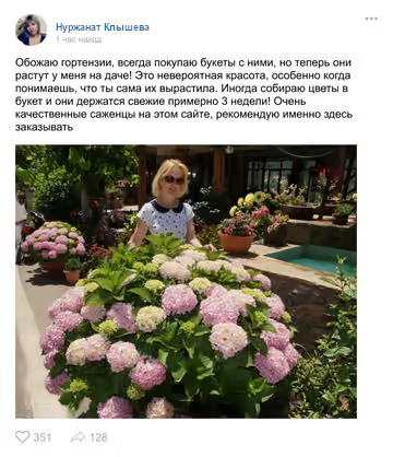 Быстрый результат и долголетие (цветение на следующий сезон после высадки саженцев и 9 лет вы сможете наслаждаться красотой гортензий)