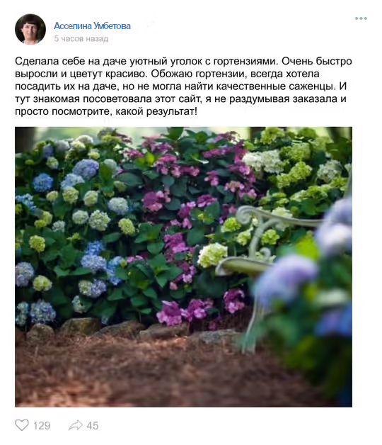 Быстрый результат и долголетие (на следующий сезон после высадки саженцев и 9 лет вы сможете наслаждаться красотой гортензий)